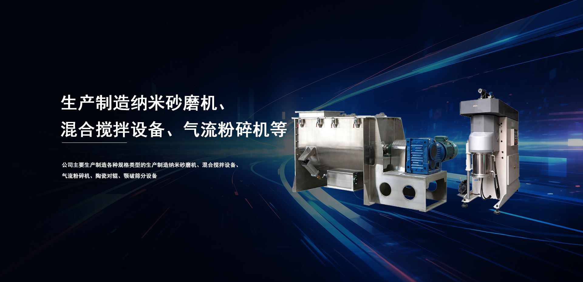 生產制造納米砂磨機、混合攪拌設備、氣流粉碎機、陶瓷對輥、顎破篩分設備